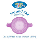 • SEE INSIDE. The Sip and See clear silicone valve in the Cheers360 lid lets baby see inside the cup without spilling.