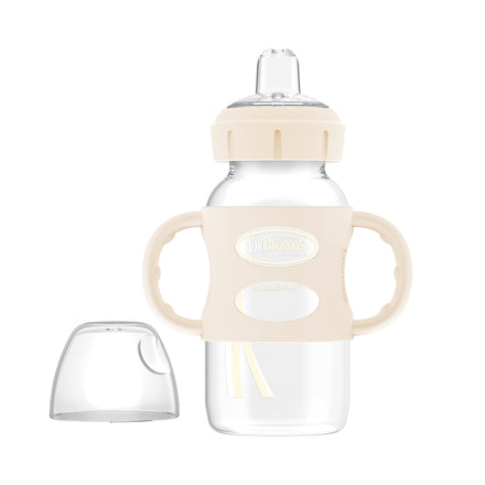 Dr. Brown's Milestones Wide-Neck Sippy Spout Bottle with 100% Silicone Handles, Easy-Grip Handles with Soft Sippy Spout, 9oz/270mL, Ecru, 1-Pack, 6m+