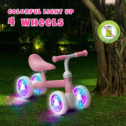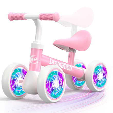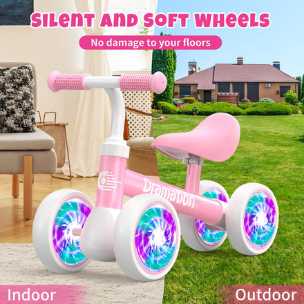 DRAMATION Baby Balance Bike for 1 Year Old Girls, 10-18 Months Toddler Balance Bike with No Pedal 4 Silence Wheels, Baby Walker, 1st Birthday Gift (Colorful Lighting)