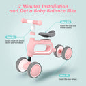 • 2 MINUTES INSTALLATION AND GET A BABY BALANCE BIKE: Not like other balance bikes that need many steps and even screws to install, this toddler bike need 2 minutes and your baby can get a lovely baby bike