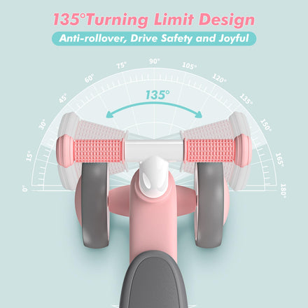 • 135°TURNING LIMIT DESIGN: The balance bike has a 135° turning limit design to avoid side falling, wider enclosed wheels will avoid foot damage. Babies can learn to go forward and back with their feet to practice toddlers' leg strength
