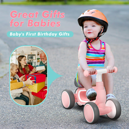 DRAMATION Baby Balance Bike for 1 Year Old Girls Gifts, 10-12 Months No Pedal Toddler Balance Bike with 4 Silence Wheels, 1st Birthday Gift, Ride On Toys for Boys Girls 1 Years Old, Pink