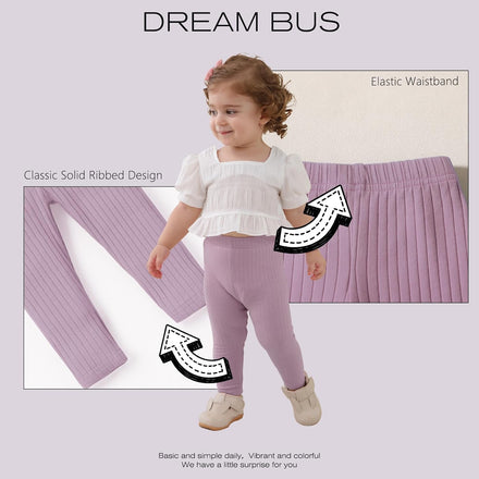 DREAM BUS 5 Pack Toddler Girl Pants Baby Girl Solid Ribbed Pants Toddler Girls Bottoms Leggings Newborn Cotton Jogger