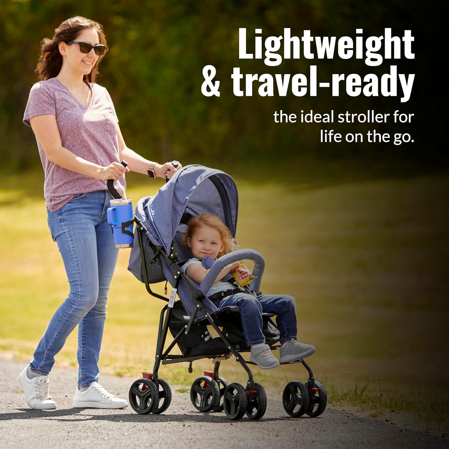 Dream On Me Vista Moonwalk Baby Stroller in Blue, Lightweight Infant Stroller with Compact Fold, Multi-Position Recline Umbrella Stroller with Canopy, Extra Large Storage and Cup Holder