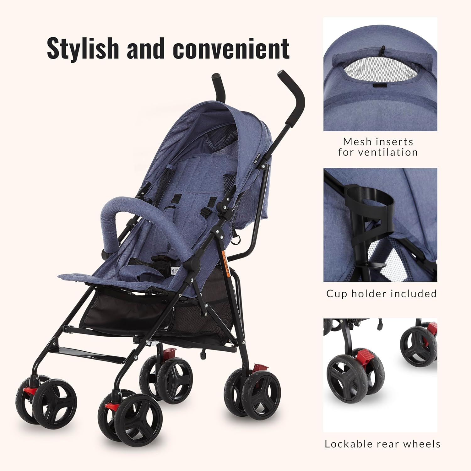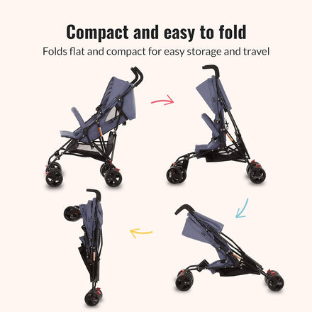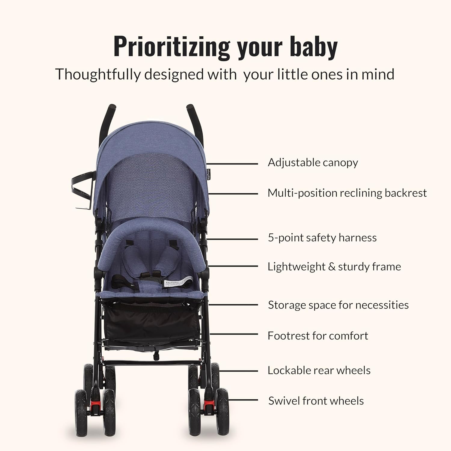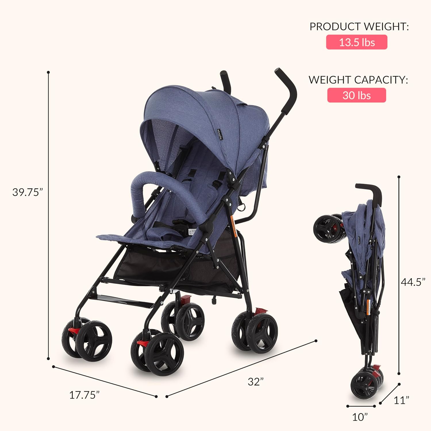 Dream On Me Vista Moonwalk Baby Stroller in Blue, Lightweight Infant Stroller with Compact Fold, Multi-Position Recline Umbrella Stroller with Canopy, Extra Large Storage and Cup Holder