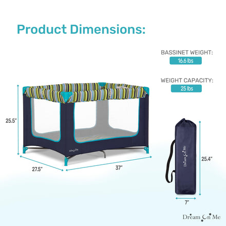 Dream On Me Zodiak Portable Playard in Navy, Lightweight, Packable and Easy Setup Baby Playard, Breathable Mesh Sides and Soft Fabric - Comes with a Removable Padded Mat