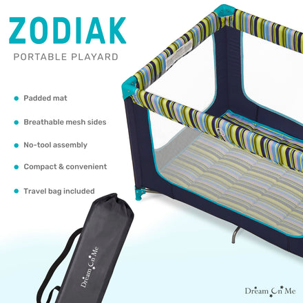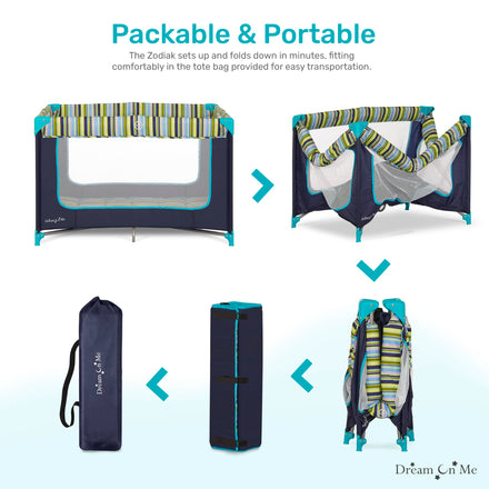 • LIGHT & MOBILE: The Zodiak Portable Playard has a lightweight aluminium frame that allow easy mobility. Set-up is quick and easy and it folds & stores compactly in the tote bag provided, making it perfect for vacationing.