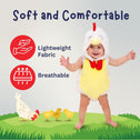 • AWESOME DETAILS: Fuzzy white romper with yellow front is super soft and comfortable for babies and toddlers to wear. Cozy attached hood is adorned with a chickie face, crown, and beak.