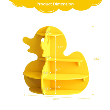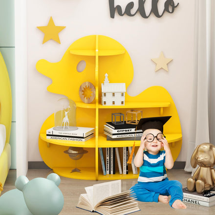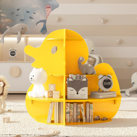 • Kids Bookshelf with 4-Tier Diversified Storage Shelves: This yellow duck bookshelf for kids is designed for different kinds of book, toy, decoration storage. This yellow duck nursery bookshelf with ample storage space and open reading shelves fosters an organized and pleasant play and reading area at the same time promoting your little ones’ reading habits and tidiness. The baby bookshelf adopts a duck shape and yellow painted color that not boosts the visual appeal but will be great addition to kids’ bedroom, playroom, reading room, nurseries, living room, kindergarten, etc.