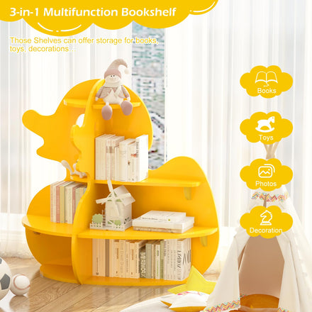 Duck Kids Bookshelf Toddler Bookcase 4-Tier Baby Book Rack Children Toy Storage Organizer Wood Display Shelf for Nursery Playroom Bedroom Classroom School Homeschooling Boy Girl’s Gift (Yellow Duck)