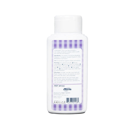 • Premium USP Grade Pure Cornstarch powder contains soothing Aloe and Vitamin E
