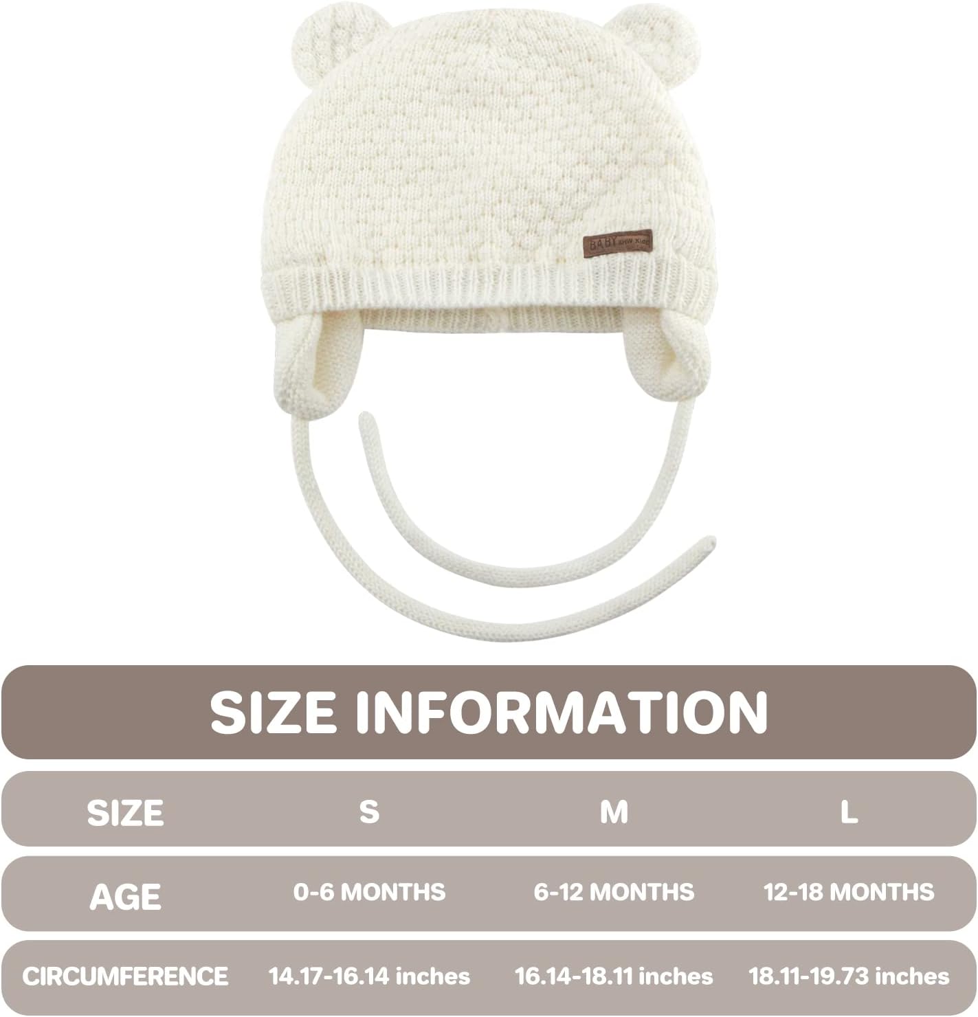 • [3 Sizes to Choose]: Knit beanie available 3 sizes: 0-6 months (hat circumference: 14.17-16.14 inches); 6-12 months (hat circumference: 16.14-18.11 inches); 12-18 months (hat circumference: 18.11-19.70 inches). Baby hat size is only for reference, please according to your baby's head circumference