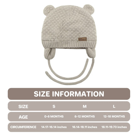 • [3 Sizes to Choose]: Knit beanie available 3 sizes: 0-6 months (hat circumference: 14.17-16.14 inches); 6-12 months (hat circumference: 16.14-18.11 inches); 12-18 months (hat circumference: 18.11-19.73 inches). Baby hat size is only for reference, please according to your baby's head circumference
