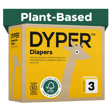 DYPER - Baby Diapers Hypoallergenic Cloth Alternative Day & Overnight Protection - Made with Plant-Based* & Honest Ingredients - Size 3 (168 Count)