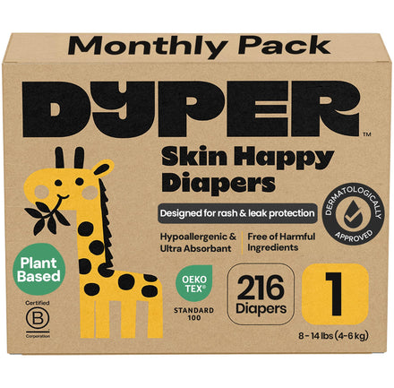 - Certified for Baby’s Safety: Dyper size 1 overnight diapers meet the highest OEKO-TEX consumer safety standards, are clinically tested and dermatologist-approved for sensitive skin. Proudly B Corp Certified. This diaper size 1 ensures your baby’s safety and comfort remains our top priority