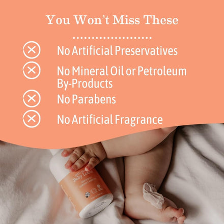 • NO WORRISOME CHEMICALS: This baby lotion for dry skin is made without petroleum, mineral oil, artificial fragrance, or preservatives, so it’s safe for your baby's delicate skin.