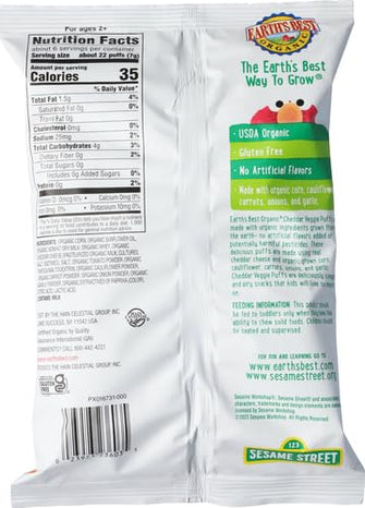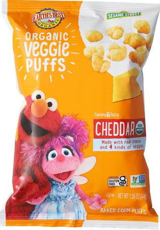 Earth's Best Organic Veggie Puffs for Toddlers 2 Years Old and Up, Cheddar Flavor, 1.55 Ounce Bag