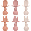 • Intuitive and Easy to Use: These spoons and forks have short, rounded handles that are easy for your baby's small hands to grip, making it easier to get food into the mouth. The different textures on the surface promote baby's sensory development.