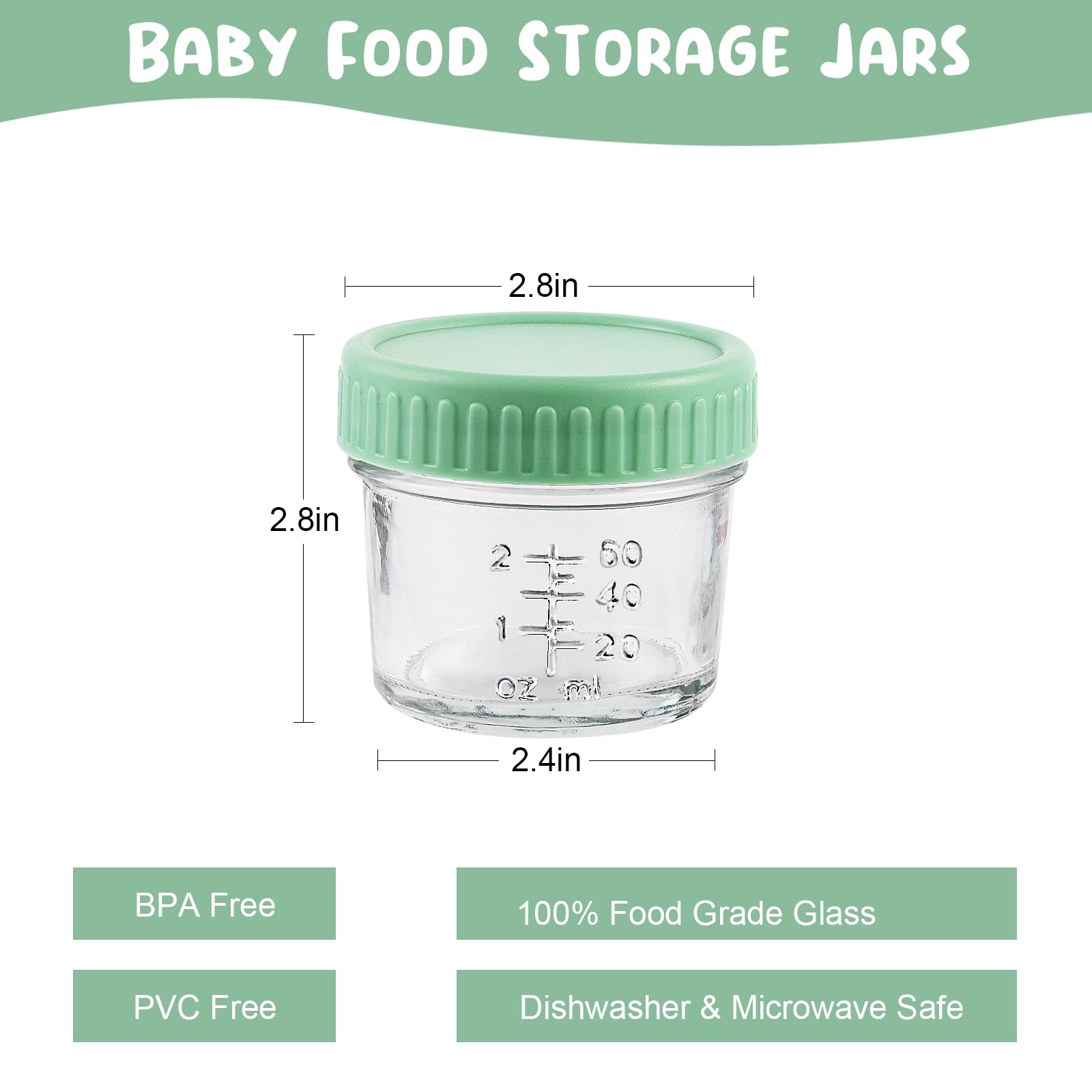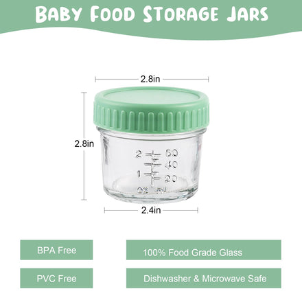 • Perfect Portioning with Grade Line Markings: To make it easier to use for your baby, our glass baby food jars come with 2 ounce measuring scale, and the whole jars can be up to 4 ounces capacity, which can be quickly and accurately filled to the desired capacity.