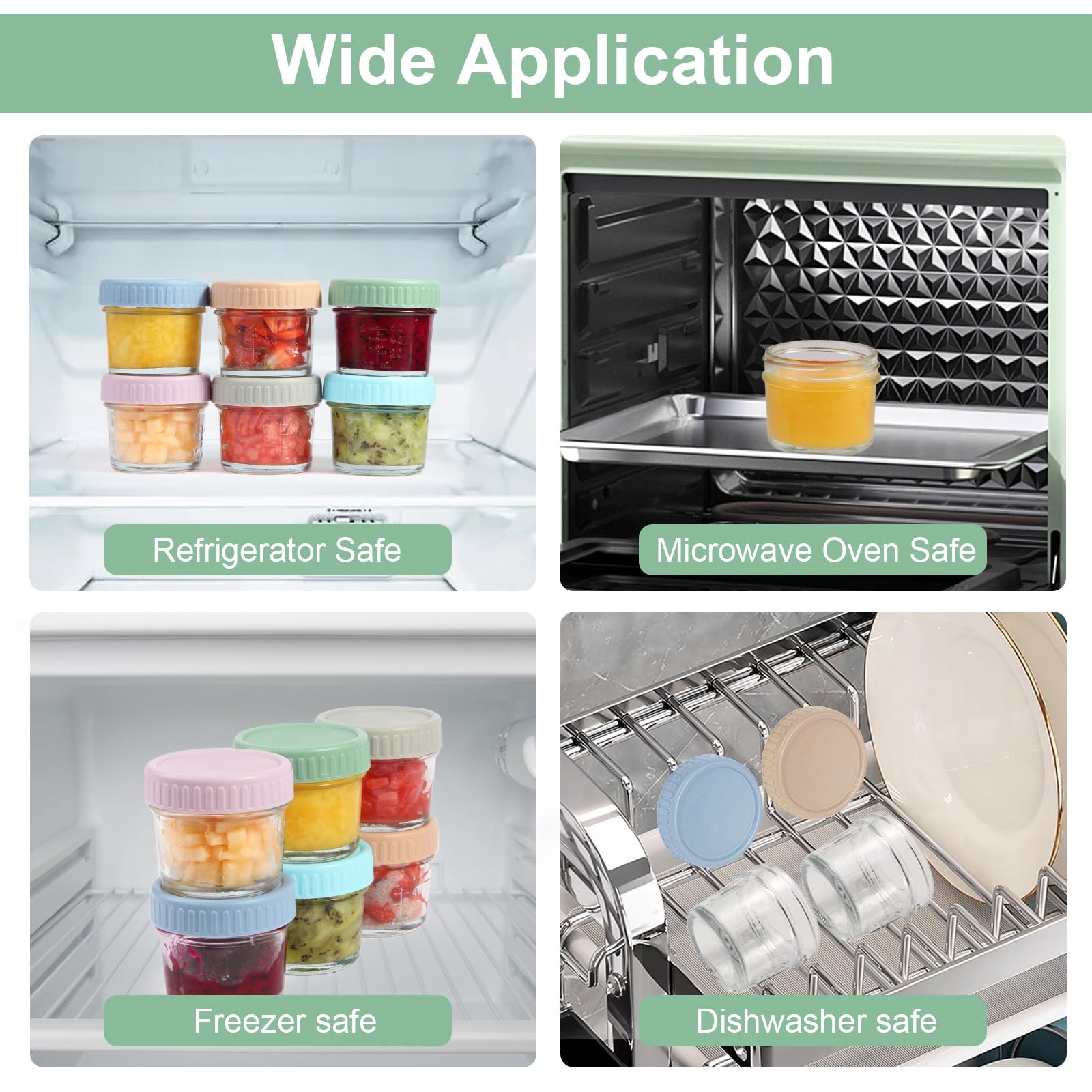 Eascrozn 6 Pack Glass Baby Food Storage Containers, 4 oz Glass Jars with Lids, Small Baby Food Jars, BPA Free Baby Snack Containers, Microwave, Dishwasher and Freezer Safe