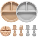 Eascrozn Silicone Baby Feeding Set, 2 Pack Divided Baby Plates with Suction, 2 Pack Spoons and Forks Set, BPA Free, Baby Led Weaning Supplies for Toddler Utensils Baby Feeding Essentials