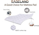 With down alternative microfiber fillings,The EASELAND mattress pad can add great softness and smooth touching while protecting your mattress. SOFT AND SKIN-FRIENDLY: 300TC cotton TOP fabric, Down Alternative Microfiber fillings. BOX DESIGN:Many square boxs avoid the fillings shift around.Keep fluffy in every corner. DEEP POCKET DESIGN:130GSM Single-track Elastic Fabric Surrounds Mattress in 360-degree to Avoid it Moving! MACHINE WASHABLE:Machine washable under gentle cycle,No bleach ,no need for professional cleaning! 1.High thread-count material make this pad breathable during the long night sleeping.No worry of waking up sweaty! 2.Extra deep pocket will stretch up to 21inch deep. Adopting the box stitching design makes the filling not shfit around. 360 degrees fabric pocket will wrap your mattress very well and make the bed neat all the time no mattress how you move .protect your mattress well ! 1.Machine washable under gentle cycle 2.Tumble dry on low temperature mode 3.No Bleach Bring You a Cozy Bedroom. Give You a Comfortable Life.