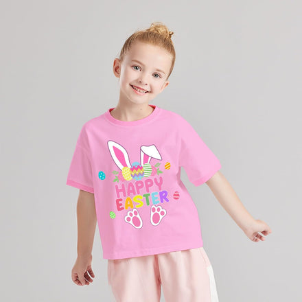 Easter Shirts for Toddler Girl Short Sleeve Easter Eggs Bunny Tshirt for Kids Cotton Tee Tops 4T