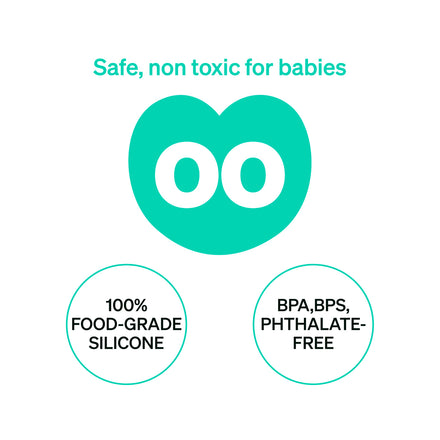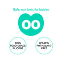 • DURABLE AND NON-TOXIC: Made from BPA-free, BPS-free, phthalate-free, 100% food-grade silicone. This silicone teether and baby toothbrush ensures safe use as a teething ring and for applying baby toothpaste and gels for babies over 6 months.