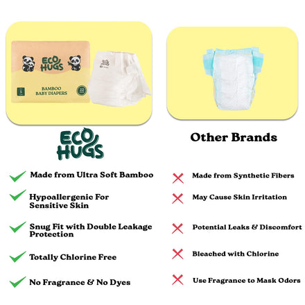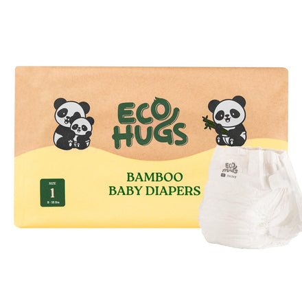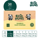 EcoHugs Organic Bamboo Diapers Size 1 | Ultra-Soft Disposable Baby Diapers | Hypoallergenic and Super Absorbent | Unscented and Totally Chlorine Free | Pack of 30