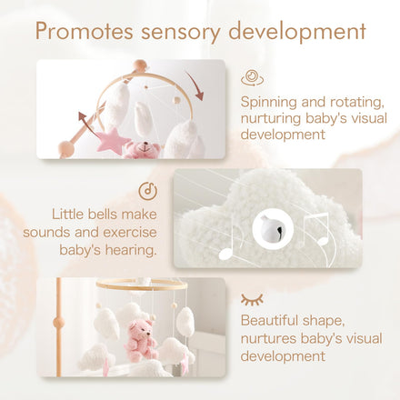 • Teddy Velvet Nursery Mobile:Baby mobile for crib can blend into the nursery design of your choice. The white moon and clouds, pink stars, and pink bear will be focal points in your neutral nursery,We share your goal to making sure your baby is exposed to something nice and safe from birth