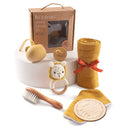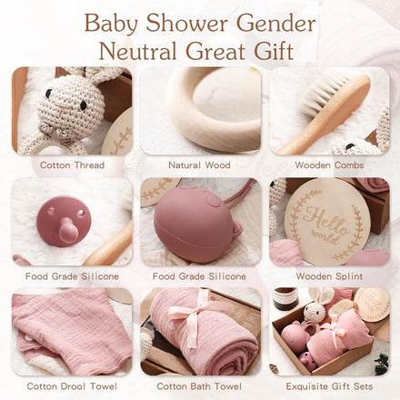 - UNIQUE BABY GIFT:Every gift set Bundled in a tasteful baby GIFT BOX suitcase, our baby gift box is an ideal present for various occasions such as birthdays, baby shower gift, baby gifts, gender reveal, baby's first Christmas, and baby's first photo shoot. made of natural materal, such as : organic beech wood, food grade silicone and cotton, baby can touch them without worrying about safety