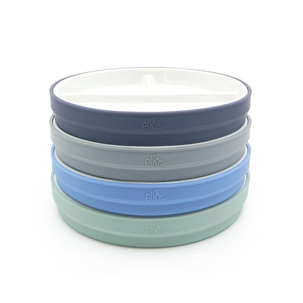 Elk and Friends Kids 6.7” Porcelain Divided Plates with Silicone Sleeves | Suitable for Babies/Kids/Toddlers | Microwave & Dishwasher Safe | Non Slip | Snack Dishes