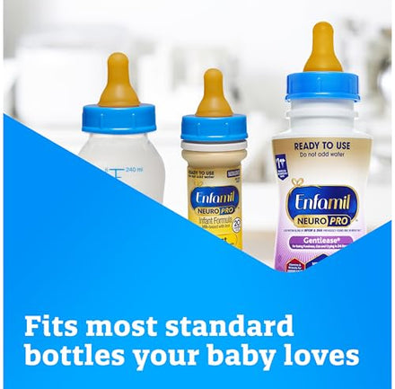 - FITS MOST BOTTLES: Recommended to be used with our ready-to-use Nursete bottles, but Enfamil nipples fit most bottles with standard or classic size bottle openings