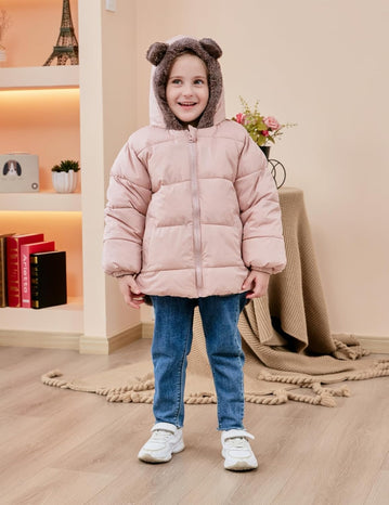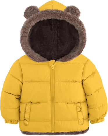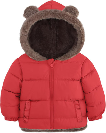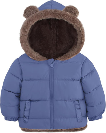 Cute bear-ear fleece coats, for little boys and girls aged 12 months to 5 years old, available in five colors.