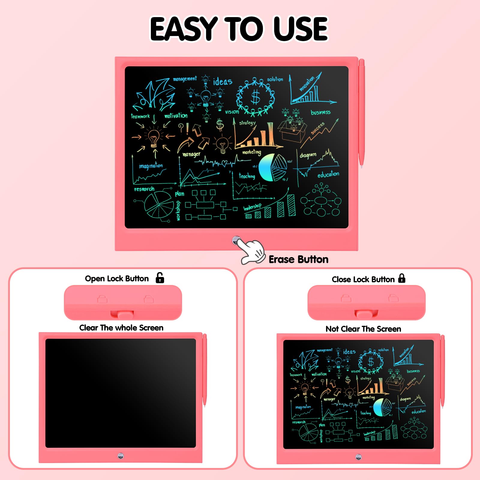 Details: EooCoo 15 Inch LCD Writing Tablet for Kids, Electronic Colorful Screen Drawing Tablet Pad, Educational Magnetic Doodle Board Toys for 3 4 5-8 Years Old Kids, Easter Gifts for Boys and Girls,Pink