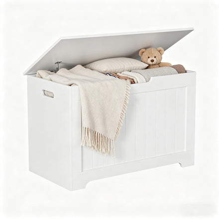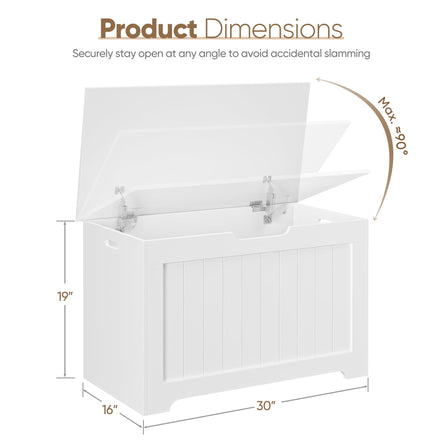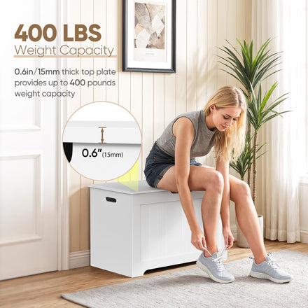 • Quality Made: Made of durable 13mm MDF board, the storage bench is strong and sturdy and looks absolutely adorable with its fresh white painted finish. Designed with safety in mind, the lid's unique safety hinge prevents accidental dropping to help protect fingers. Sturdy wood construction makes this a lasting addition to any home