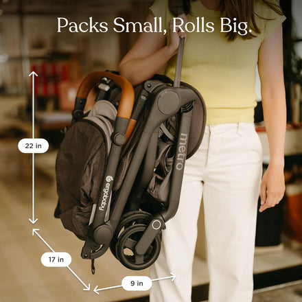 Ergobaby’s Metro 3 Deluxe Stroller takes compact comfort to the next level with premium features and thoughtful details like a support bar, parent cup holder, carry strap, and magnetic buckle—ensuring style and comfort for every adventure. Weighing at 17.1* pounds, the comfortable, stowable stroller packs big adventure into small spaces, for travels near and far.