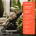 • UPGRADED FOR YOUR LIFESTYLE: Thoughtful design and upgraded features like the magnetic buckle, a convenient carry strap, support bar and parent cupholder to ensure comfort and convenience without compromise.