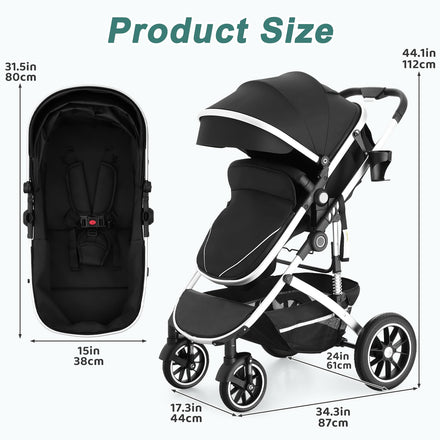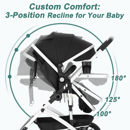 • ADJUSTABLE AND REVERSIBLE: The bassinet of this infant stroller offers versatility with 3 adjustable incline angles, allowing for inward or outward facing positions; along with a detachable foot cover and security strap for enhanced safety