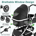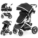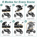 EROMMY 6-in-1 Baby Stroller with Bassinet, Convertible Infant Stroller with Adjustable Backrest & Canopy, Foldable Newborn Pushchair with Reversible Seat and Cover for 0-36 Months (Dark Black)