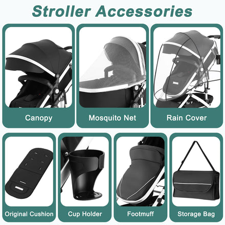 • RICH ACCESSORIES: The stroller for infants and babies comes complete with a diaper bag, cup holder, sponge pad, rain cover, mosquito net, and a variety of additional accessories to cater to all your baby travel requirements