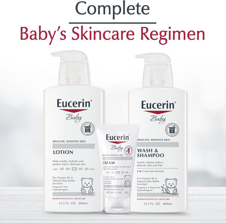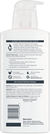 • Includes one (1) 13.5 fluid ounce bottle of Eucerin Baby Body Lotion, Fragrance Free Baby Moisturizer