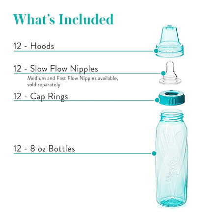 The Evenflo Feeding Classic Tinted Bottle delivers a twist on an iconic, classic design. The colorful bottle has a unique, ergonomic shape is lightweight and easy-to-hold, making feeding time comfortable for both you and your baby. The included Classic Slow Flow Nipples are 100% silicone and feature micro air vents to help prevent nipple collapse. The nipple has a gradual transition between nipple length and base to allow your baby to maintain their latch. Made from BPA-free polypropylene, the Classic Tinted Bottles have molded measurement markers in both ounces and milliliters to provide an easy and accurate way to measure the volume of liquid. These dishwasher-safe bottles (top rack only) are compatible with all Evenflo Feeding breast pumps, as well as most other standard neck breast pump brands. The bottles and nipples are 100% free of BPA, polycarbonates, PVC and phthalates, and are also made of food grade material.