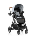 Introducing parenting on the go raised to a higher standard: The Evenflo Shyft Intuiti+ Stroller. With maneuverability that feels intuitive, this luxe stroller boasts all-wheel suspension and premium rubber tires to cushion the bumps along the way. Its modular frame allows you to parent-face or forward-face your baby in all modes: infant car seat (car seat sold separately), toddler seat and lay-flat carriage. The articulated leatherette handle adjusts to three positions, allowing you to find your most comfortable height. The extra-large, expandable UPF 50+ canopy helps protect against the elements and grows with your child to 43 in. (weighing up to 55 lb) with three adjustable heights. This refined stroller is loaded with thoughtful extras, including an extra-large stroller basket with a hidden pocket for small essentials, linked brakes to lock both rear wheels at once, a BPA-free child tray for snacks on the go and a convenient parent cup holder. The stroller also features plush, sustainable Green & Gentle Fabric woven from recycled plastic bottles and free of added chemicals and flame retardants. Intending this for your tiny rider? Shyft Intuiti+ is compatible with Evenflo Revolve180 LiteMax NXT Rotational Infant Car Seats and LiteMax NXT Infant Car Seats (both sold separately). Families have trusted Evenflo for more than 100 years for smart, innovative gear designed to make life easier, safer and more comfortable at home and on the go. Let us help you save time and find peace of mind, so you can focus on what matters most: your child.