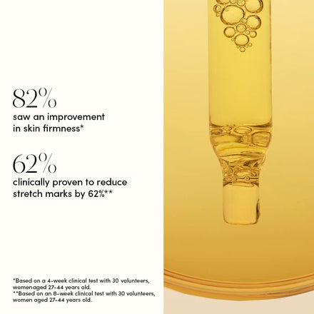 • CLEAN: Belly oil made from 13 nutrient-rich botanical actives, including Marula, Rosehip and Centella, to provide a multi-reparative treatment to help skin regain comfort, elasticity, and glow.