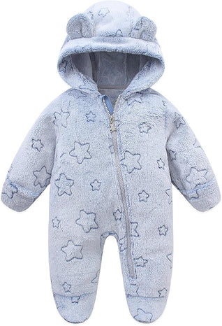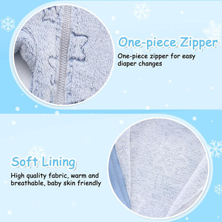 • 🐻【Attentive Design】 The winter baby fleece hooded romper with cute bear ears and cartoon pattern makes your baby look adorable, exquisite and beautiful. The one-piece suit with full-length zipper design makes it easy to change diapers.
