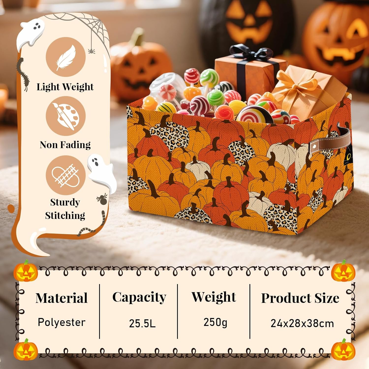 - 【AUTUMN PUMPKIN STORAGE BASKET】Featuring delightful orange pumpkin motifs, our storage baskets are the epitome of autumn charm. Whether you're looking to spruce up your home or searching for a thoughtful gift, these baskets are perfect for Halloween, Thanksgiving, or any occasion that calls for a touch of seasonal spirit