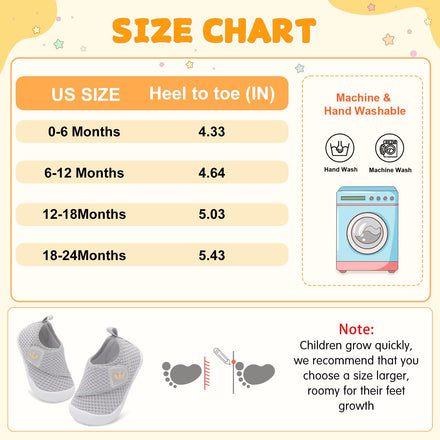 • TPR Non-Slip Sole: The sole has been subjected to 2W+ friction tests, the lightweight rubber sole provides excellent grip and comfort for baby