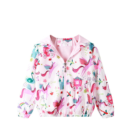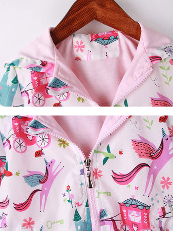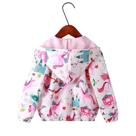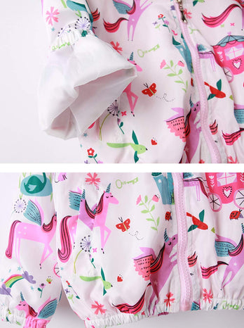 Feidoog Kids Baby Toddler Girls Cartoon Spring Fall Outerwear Windbreaker Zipper Hooded Jackets Coat,Unicorn,3-4T