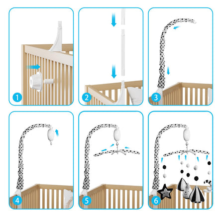 • 【PERFECT GIFT】 High-contrast black and white colors in our musical baby toys captivate and stimulate your baby's developing sense of sight, makes a great unisex gift for baby showers, birthdays or baby registries. It's not only a musical baby mobile, it's also the cutest nursery decoration.